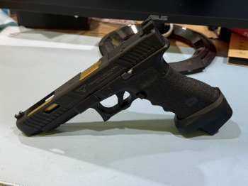 2025年7月購入 全槍原廠無改裝 僅在家中打靶 外管有正常使用痕跡 原盒、說明書、MOS轉接座皆在 隨槍附0.2g BB彈奶瓶*1、槍箱*1