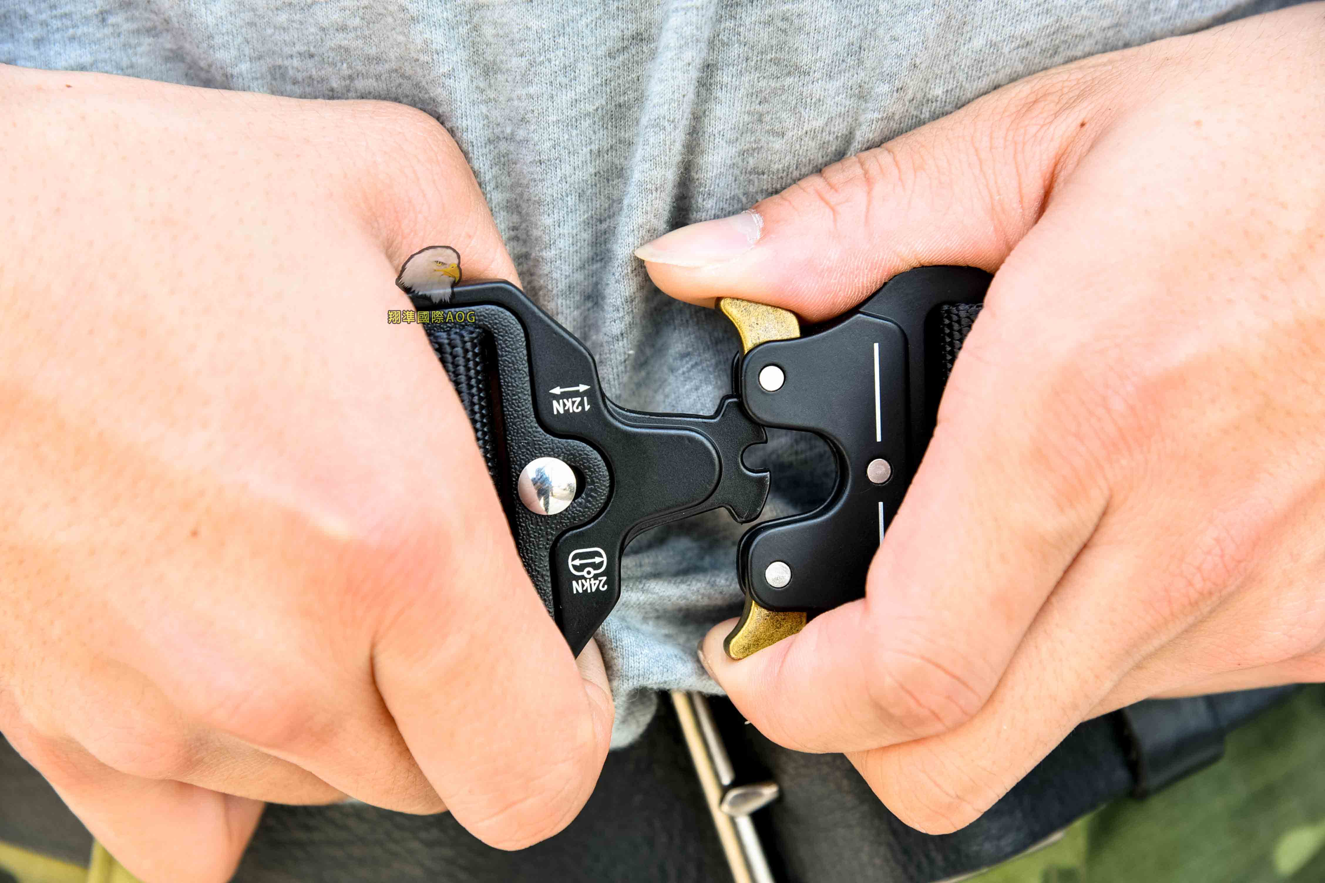 金屬插扣。防脫落扣。台灣製造。耐磨織帶。模組設計。內層防滑材質。