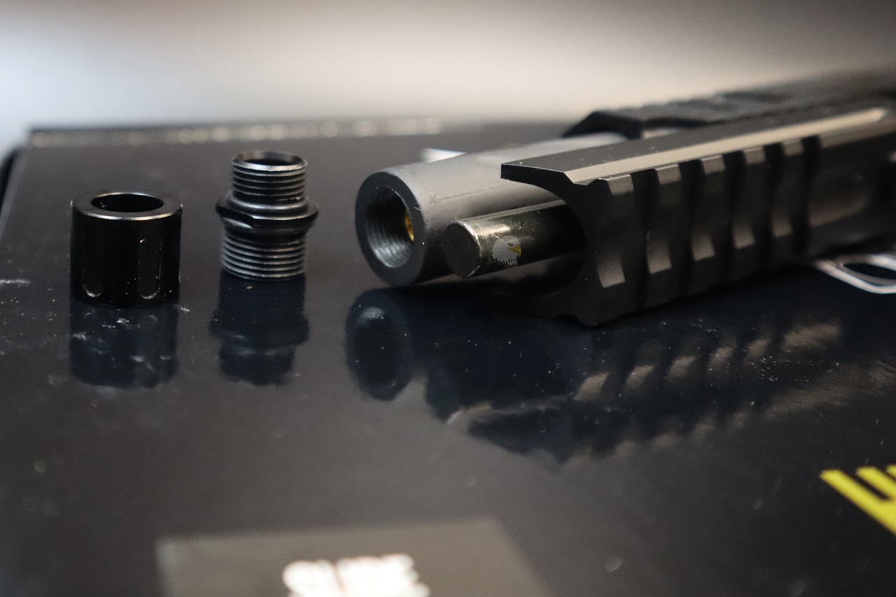 主要材質:滑套與框架 - 鋁合金 & 手槍式握把 - HIPS 聚合物