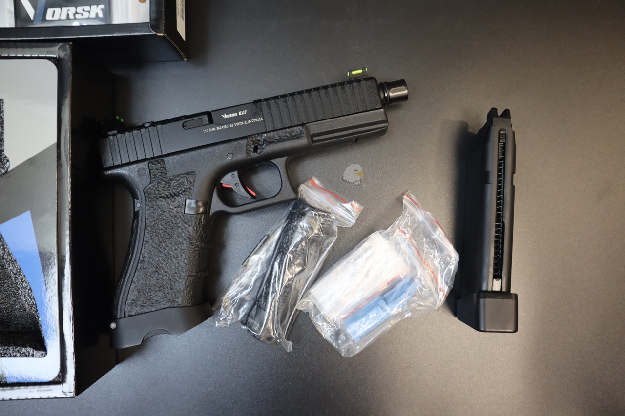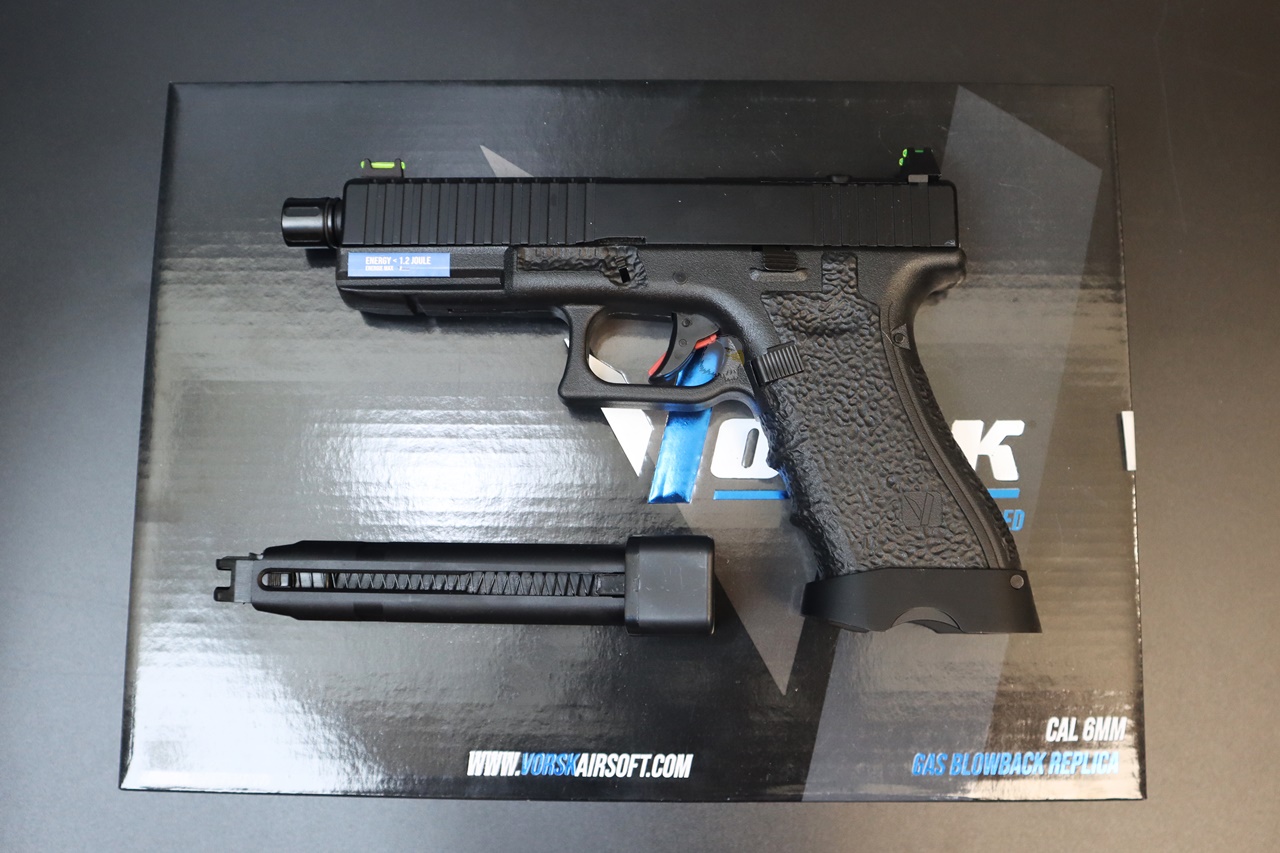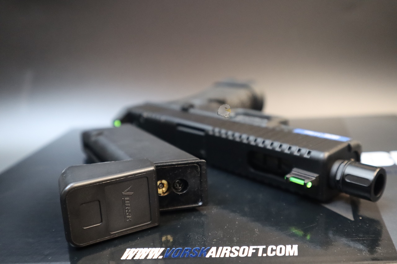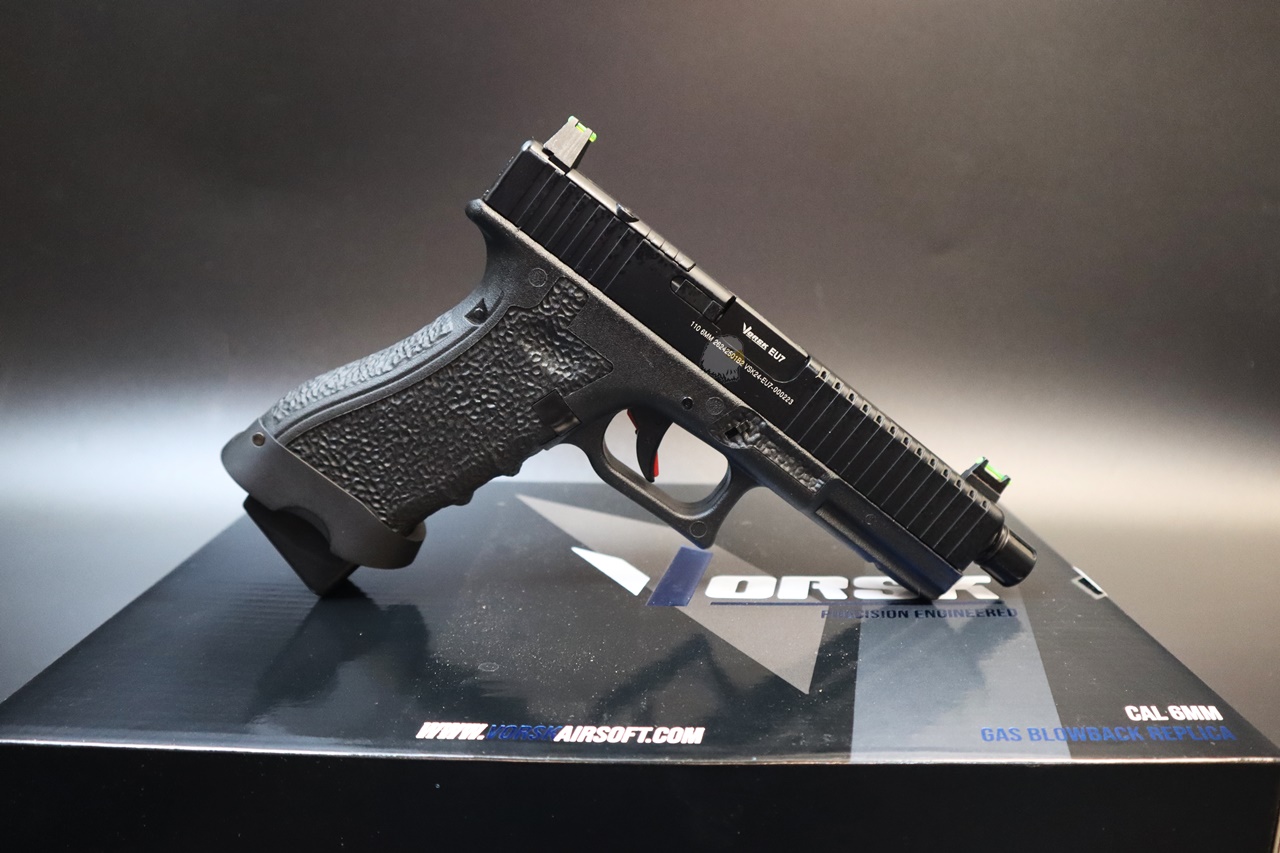 凸起的光纖瞄準鏡提高了目標捕獲能力,VORSK 的高點聚合物手槍式握把可確保在潮濕和大風的日子裡牢牢抓握,