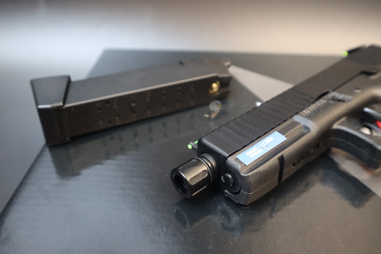 最後所有型號都配備了隱藏在槍管消焰器/蓋下方的 12 毫米順時針至 14 毫米逆時針螺紋適配器。