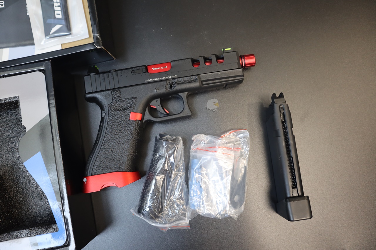 【翔準AOG】VORSK EU8 GBB手槍(黑/紅)瓦斯槍 VGP-01-40 通風 CNC 鋁製滑套 EU 系 厚底匣 EU18