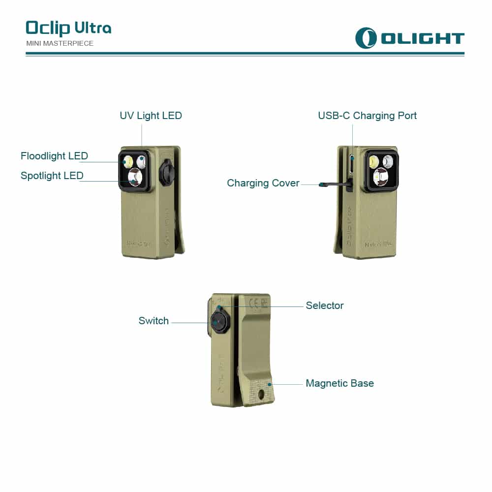 【翔準AOG】OLIGHT Oclip Ultra 530流明 OAL堅固材質 聚泛光+UV光 轉盤切換 夾燈 胸燈 便攜 應急照明 TYPE-C