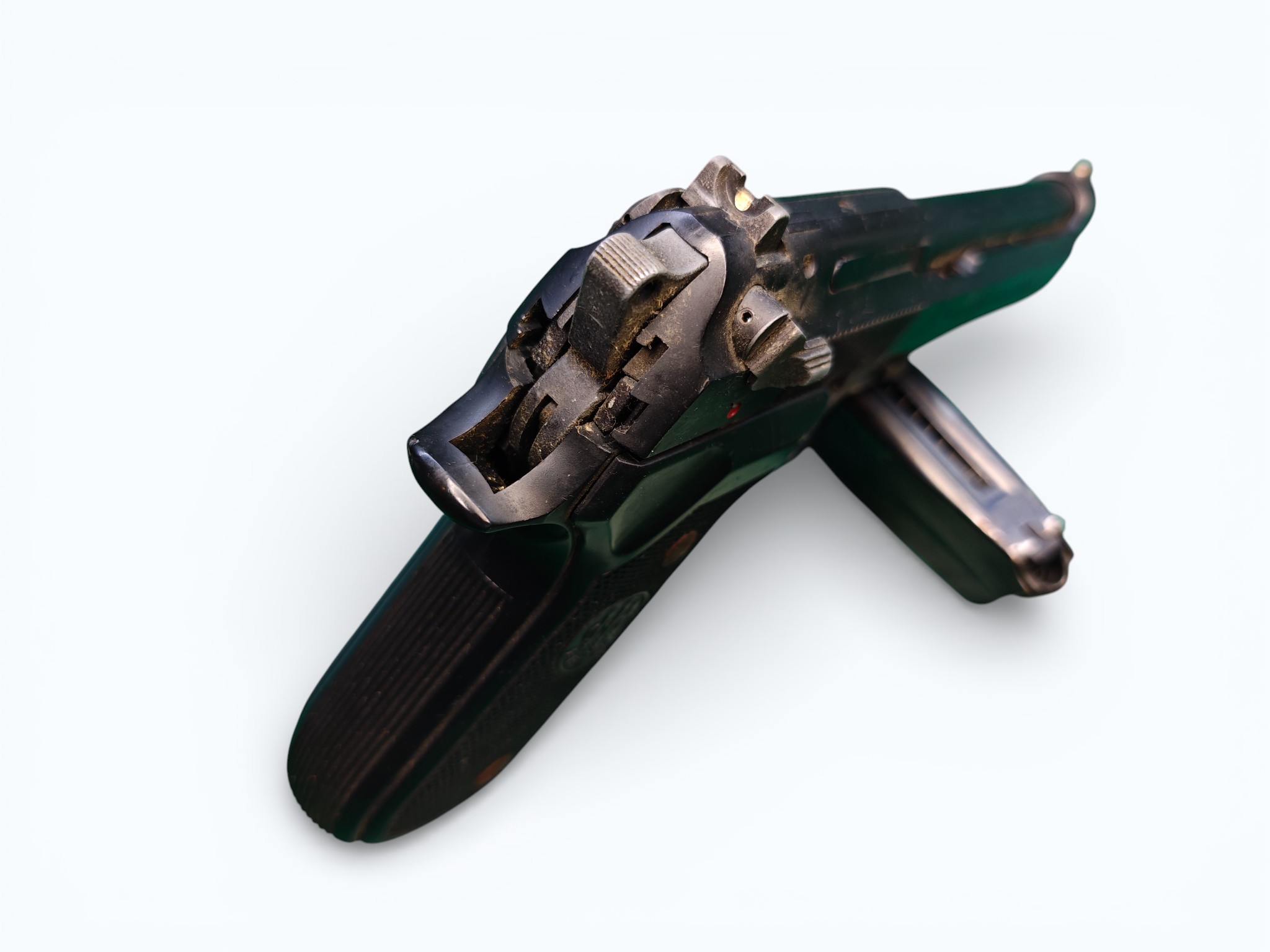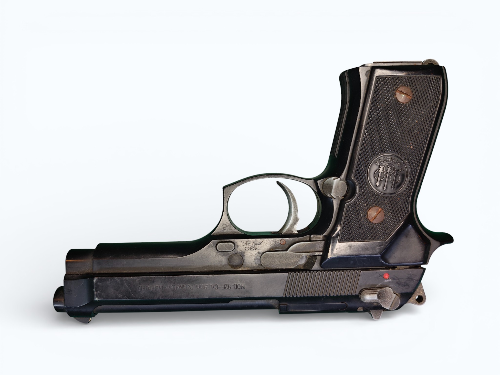 塑膠滑套,彈匣嚴重漏氣,扳機無法正常復位,生鏽班多,需自行整理!!