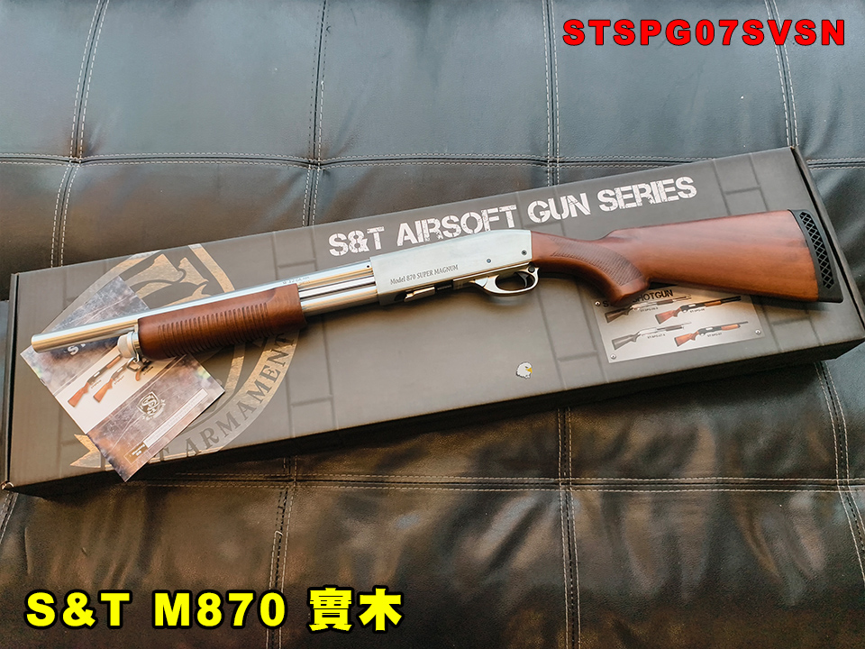 【翔準AOG】S&T M870 中版 實木(木+銀)手拉空氣槍 DA-SPG-07SN 霰彈槍實木槍托 生存遊戲
