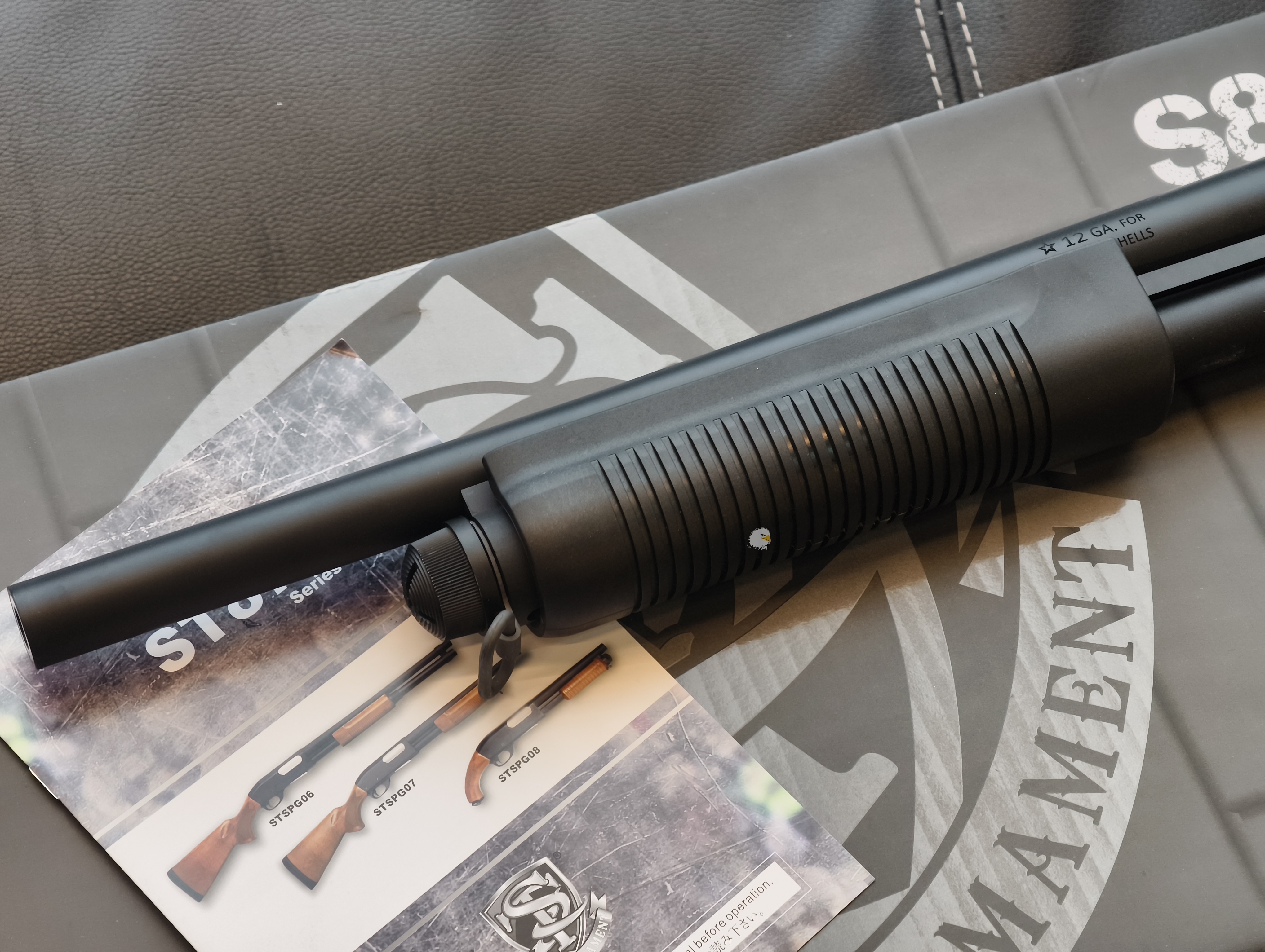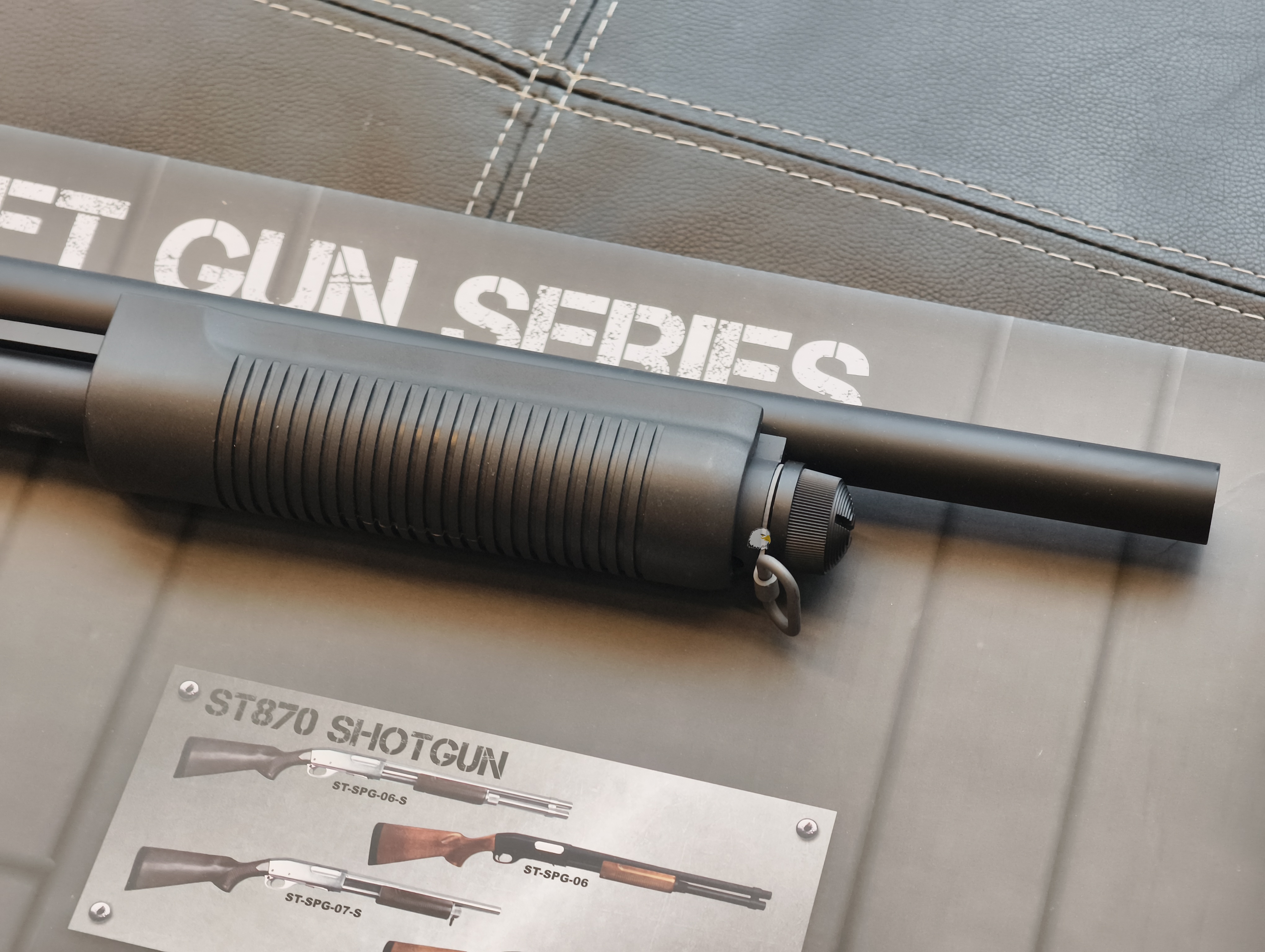 【翔準AOG】S&T M870 中版 (全黑)手拉空氣槍 DA-SPG-07 霰彈槍實木槍托 生存遊戲