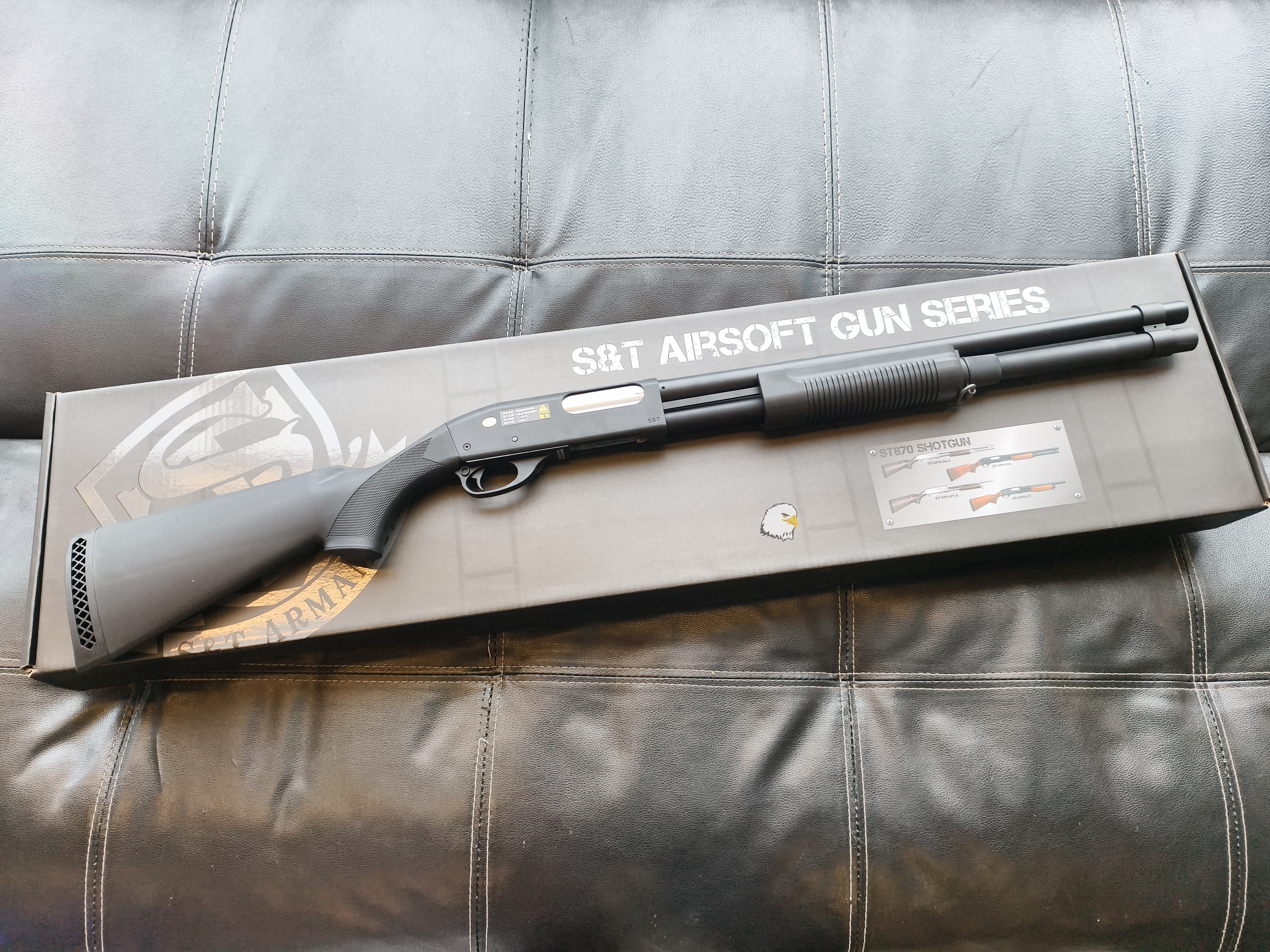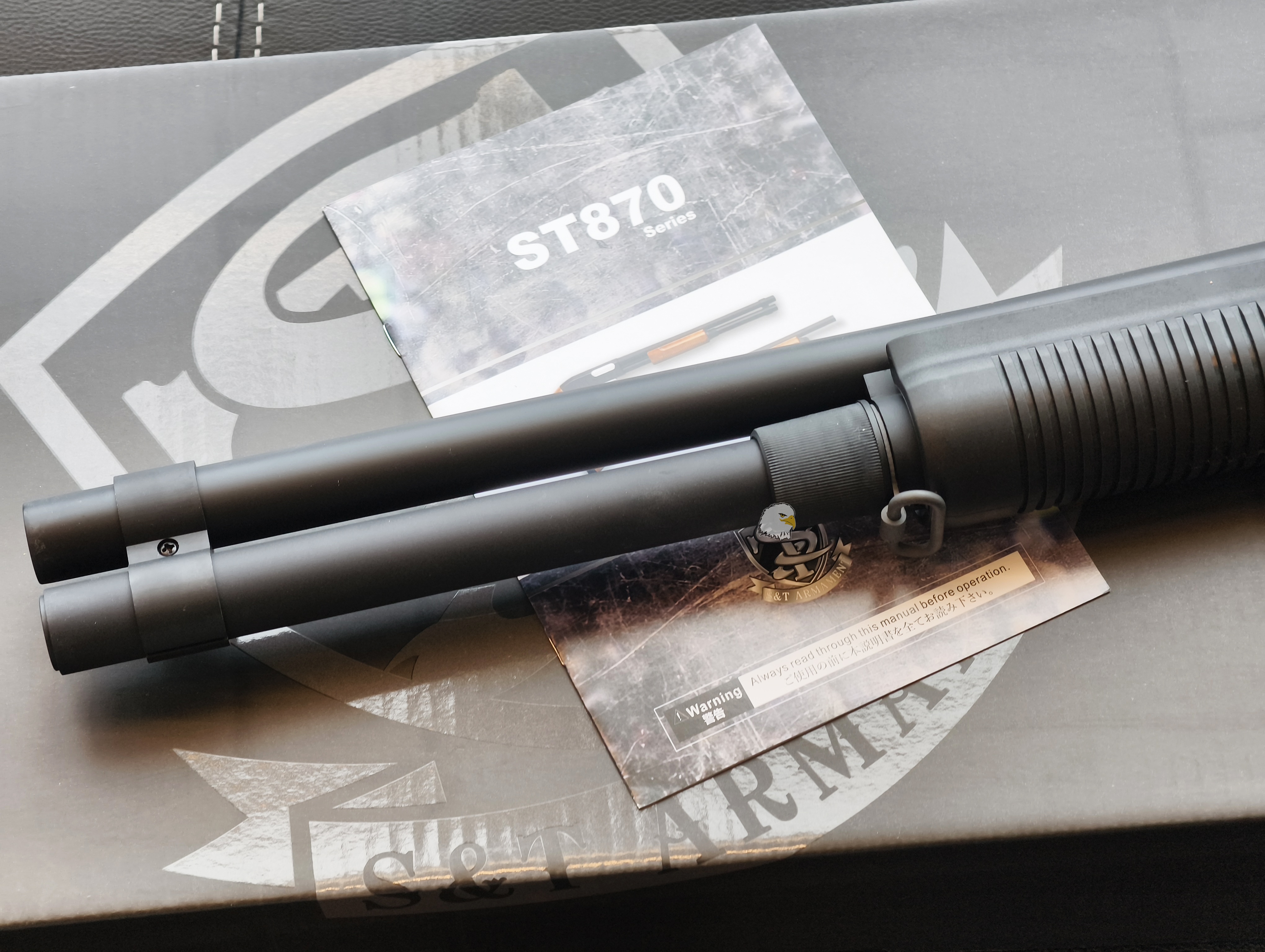 【翔準AOG】S&T M870 長版 全黑(雙)手拉空氣槍 DA-SPG06TBK 霰彈槍實木槍托 生存遊戲