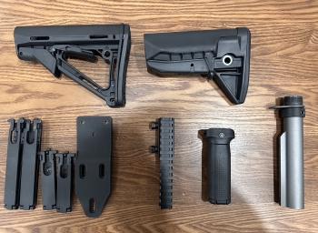 復刻CTR槍托 $200 VFC BCM 授權樣式槍托 $1000 579手槍套下沉版套件(有兩種長度)$200 金屬魚骨增高座 $200 魚骨垂直握把 $200 VFC T91 後拖桿組 $300