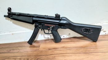 marui mp5a4電動木倉 內部改鋼齒、金屬天梯活塞汽缸並整理過 固定托空間大可放各種電池 無下場僅掛牆,單/連發射擊清脆,拿到手即可把玩 附一夾 售價3500 line : pubg80609