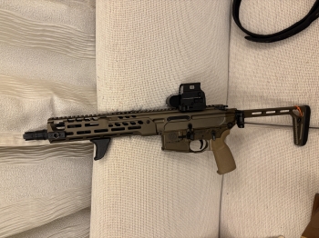 左側有輕微刮傷 管皮皆近期才改裝 有改RHD HOP-UP 調整旋鈕連桿組 + 改良型下壓桿組,改善原廠尿彈及下壓桿容易變形問題 初速可調 一槍四個原廠V3彈匣,附照片上的瞄具,誠可議價,直接電話或LINE聯絡