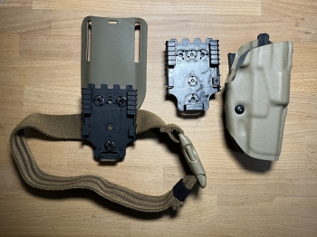 未下場, 僅室內上課用, 物品含沙法利蘭6379槍套 + 沙法利蘭槍套扣具 + 快拆板 + 腰掛延伸板(復刻) + 固定綁腿。 整體約95%新, 双北可面交, 其餘7-11店到店 (運費60)。 因升級內紅點+槍燈, 故更換槍套。 有問題請發問。