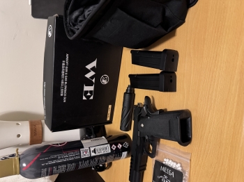 退坑⋯沒有下場打過 附原裝盒子、彈夾兩個(其中一個會漏氣)、消音飾管、bb彈、瓦斯1/4瓶、放彈夾配件的小包