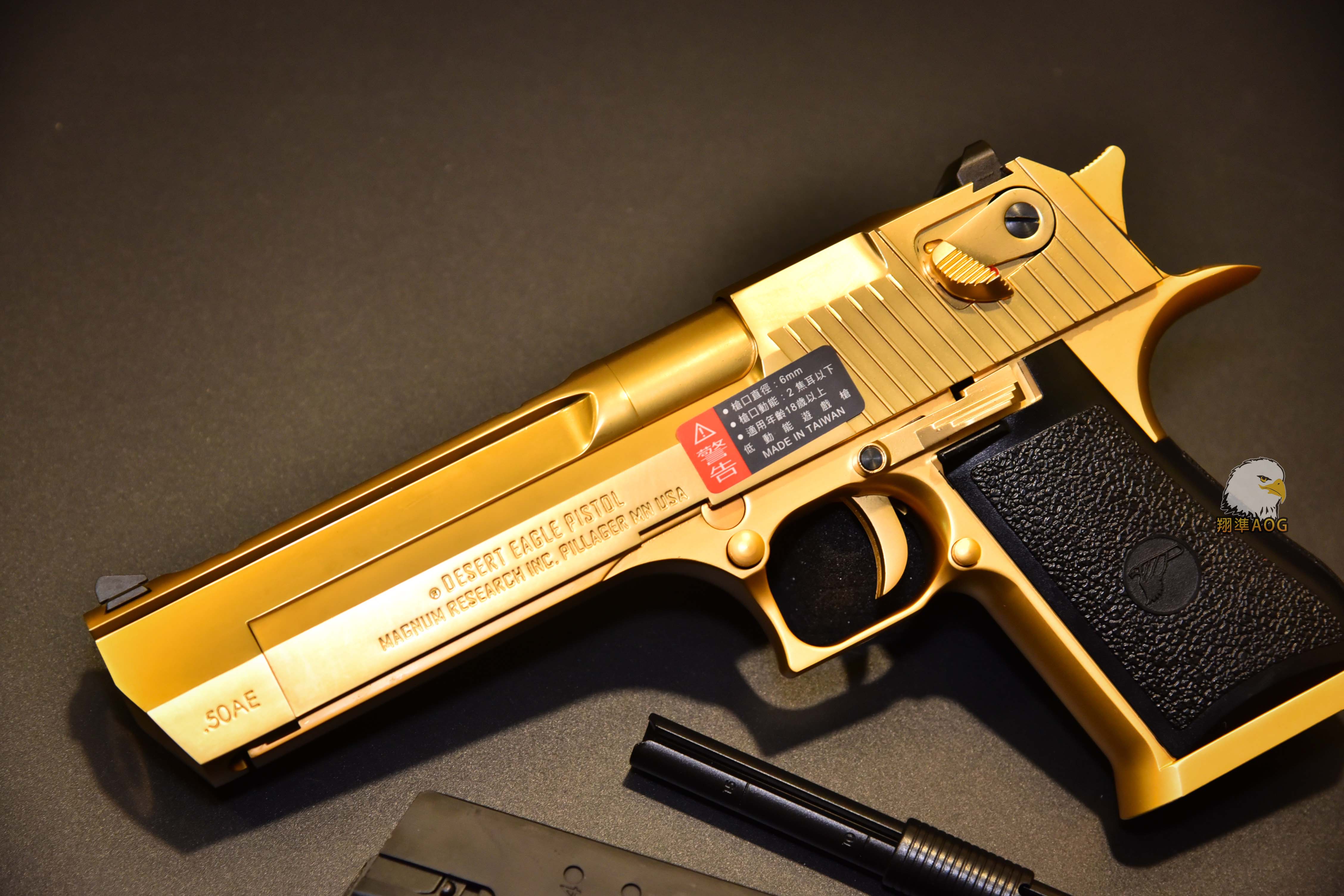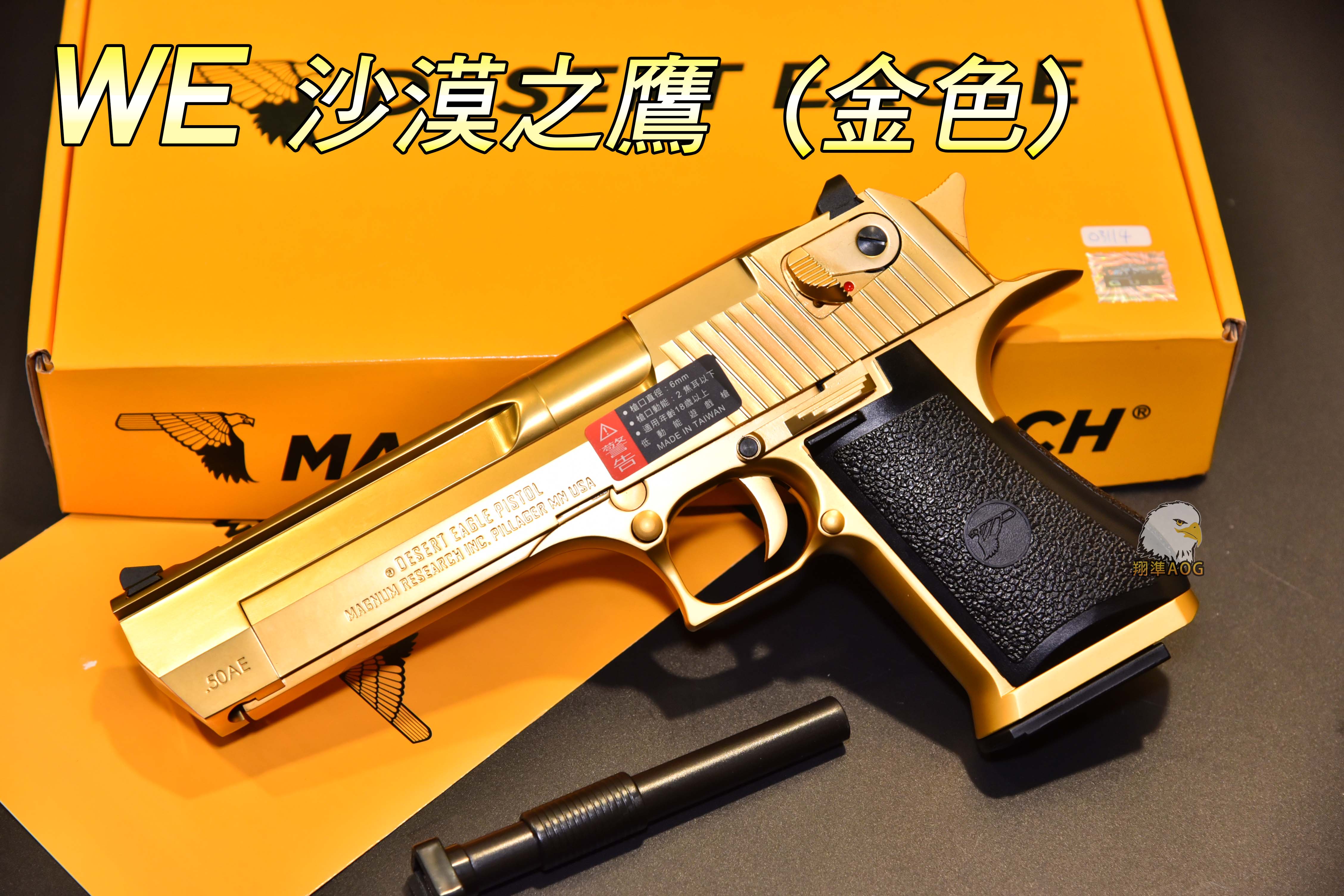 【翔準軍品AOG】 WE 沙漠之鷹 (金色) 授權刻字 舒適握把 戰術背包 槍套 全金屬 瓦斯手槍 2110