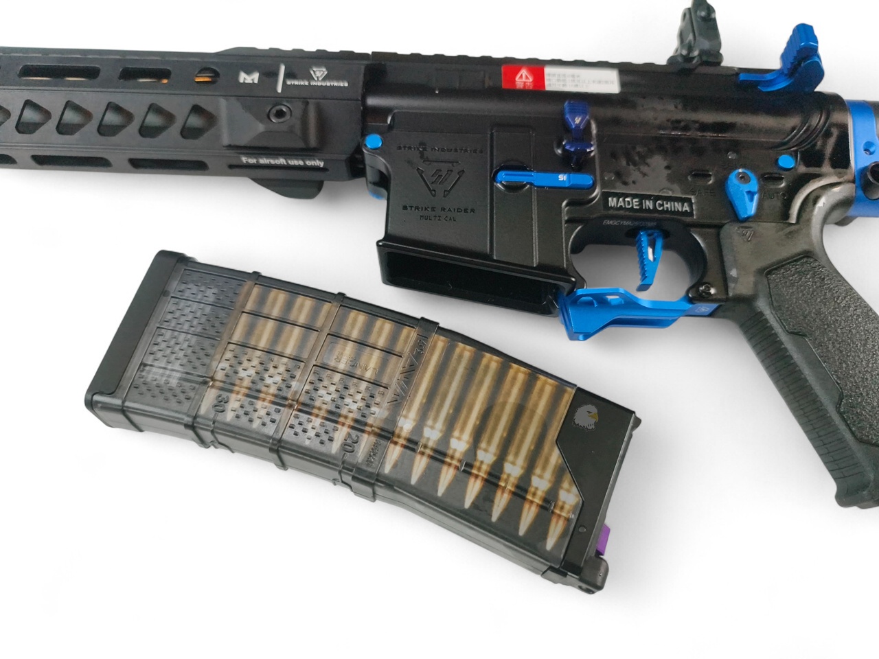 隨附彈匣為 LANCER SYSTEMS L5AWM 型瓦斯彈匣 / 鋼製螺栓扣、拆卸銷、槍栓連動座