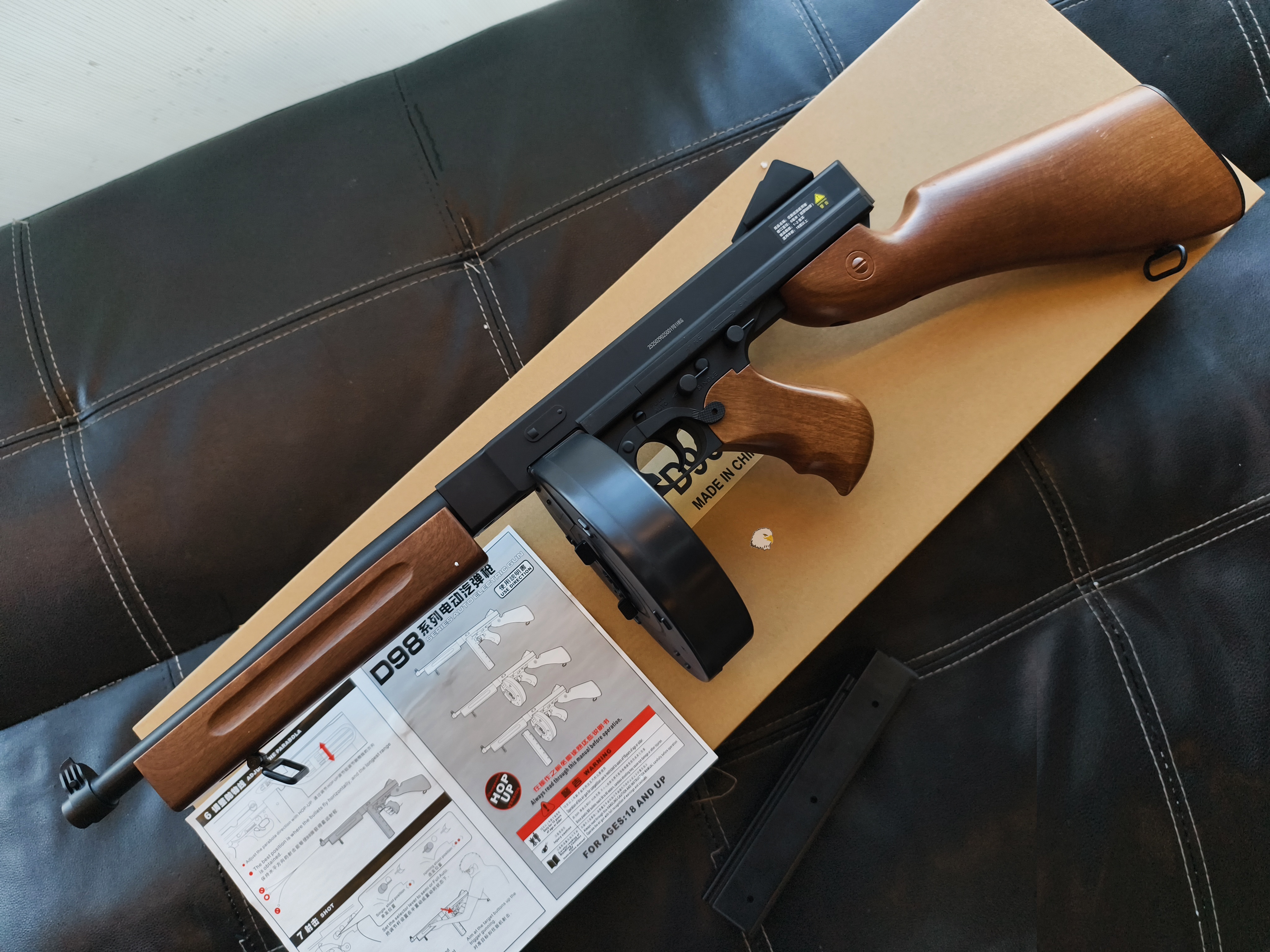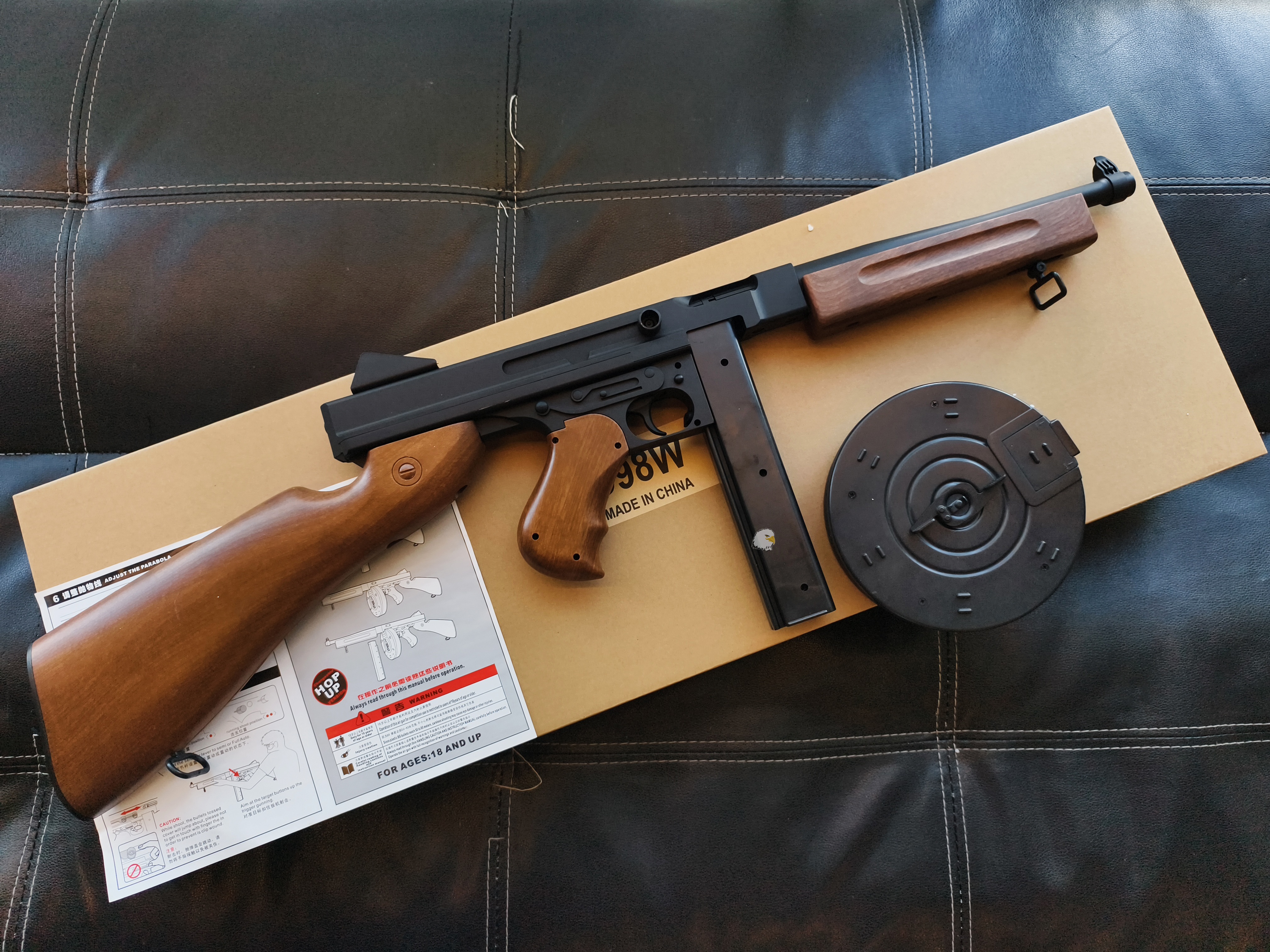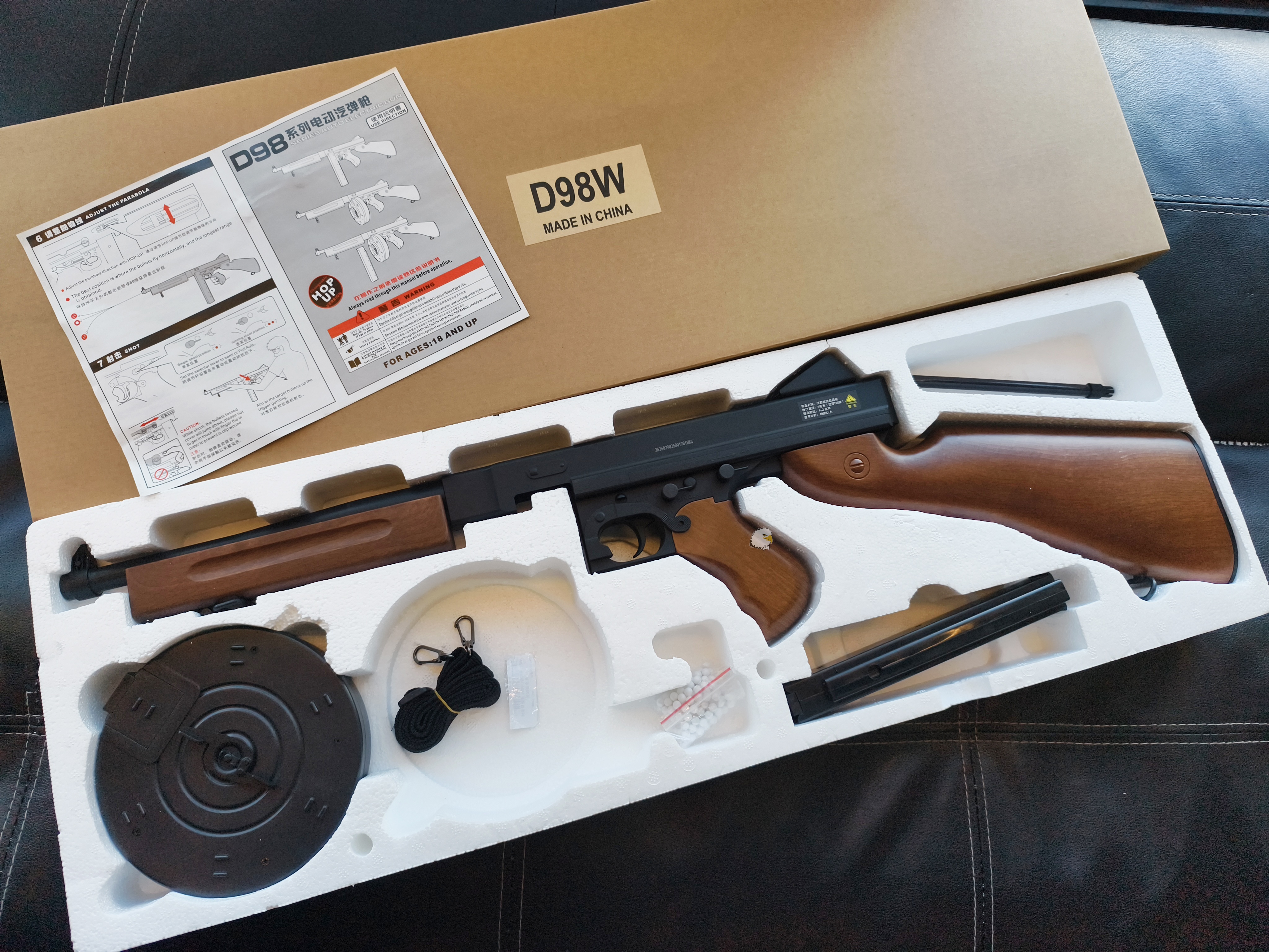 【翔準AOG】現貨 WELL D98W 湯普森衝鋒槍附彈匣/彈鼓 電動槍 DW-03-D98W 全塑膠仿木版 M1A1 AEGBB槍 生存遊戲