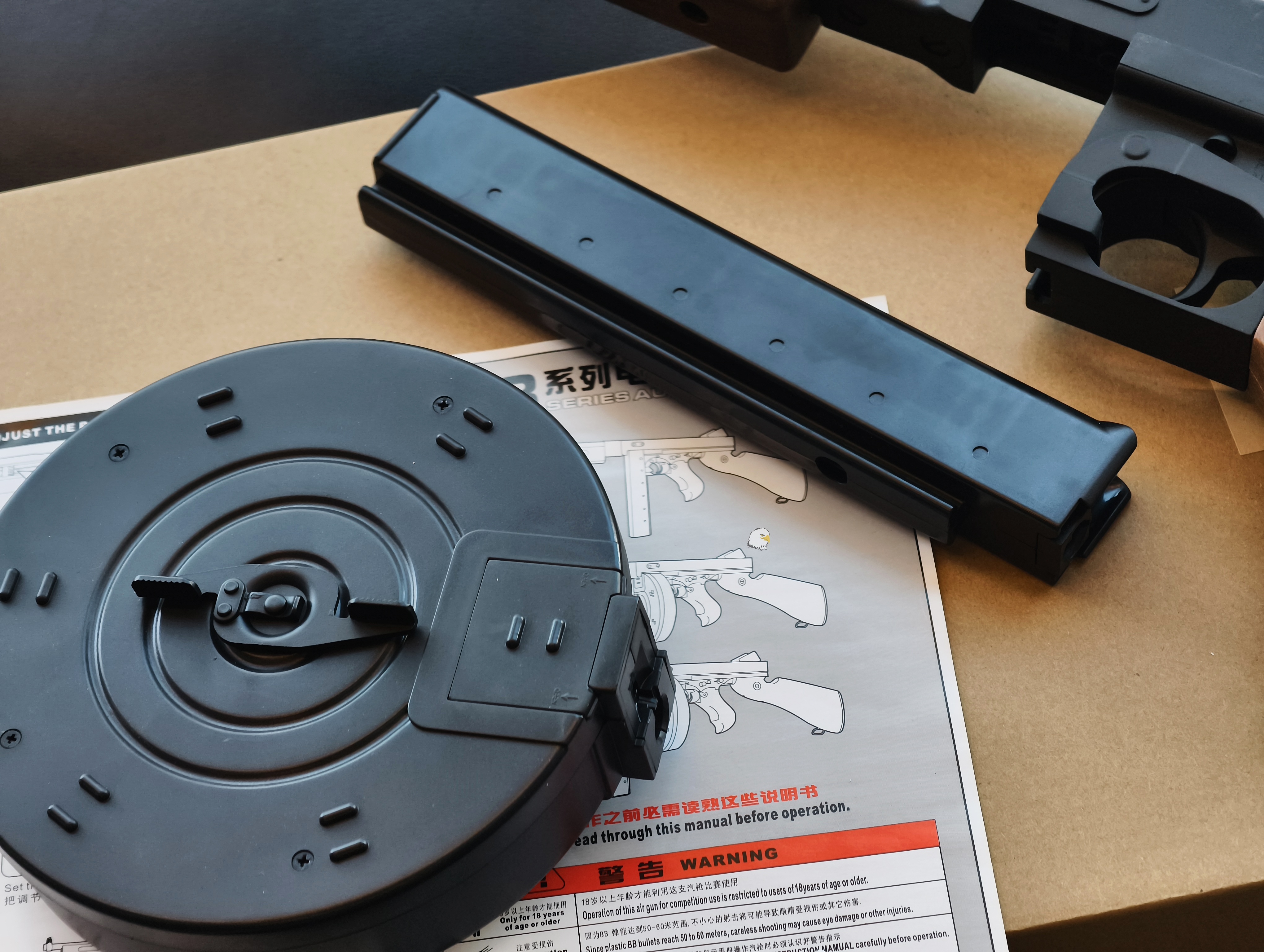 包裝內包含一個30發彈匣和一個彈鼓。彈鼓需要上弦,