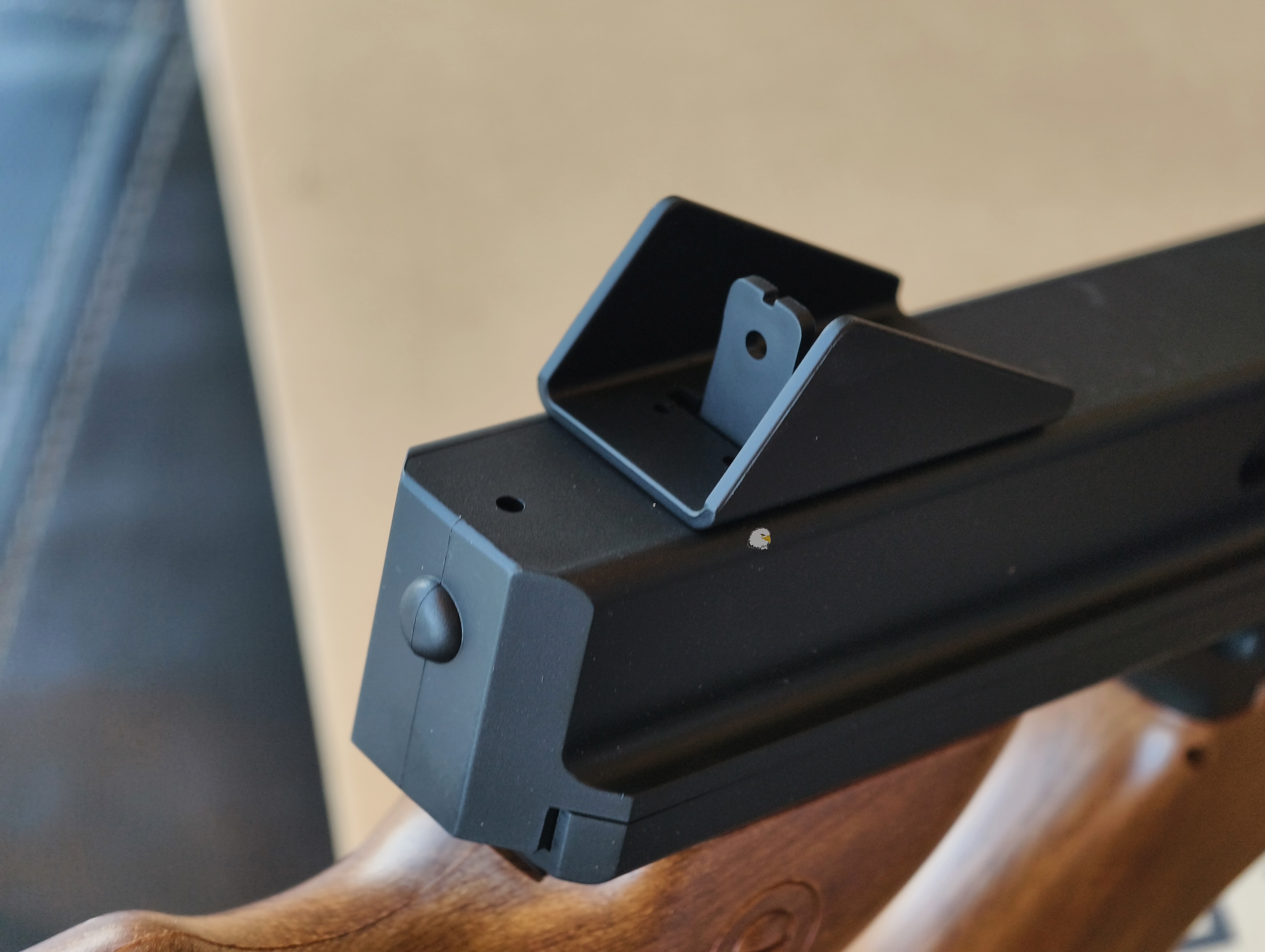 與真槍一樣,它沒有皮卡汀尼導軌或韋弗導軌。瞄準只能透過預設的機械瞄具進行。