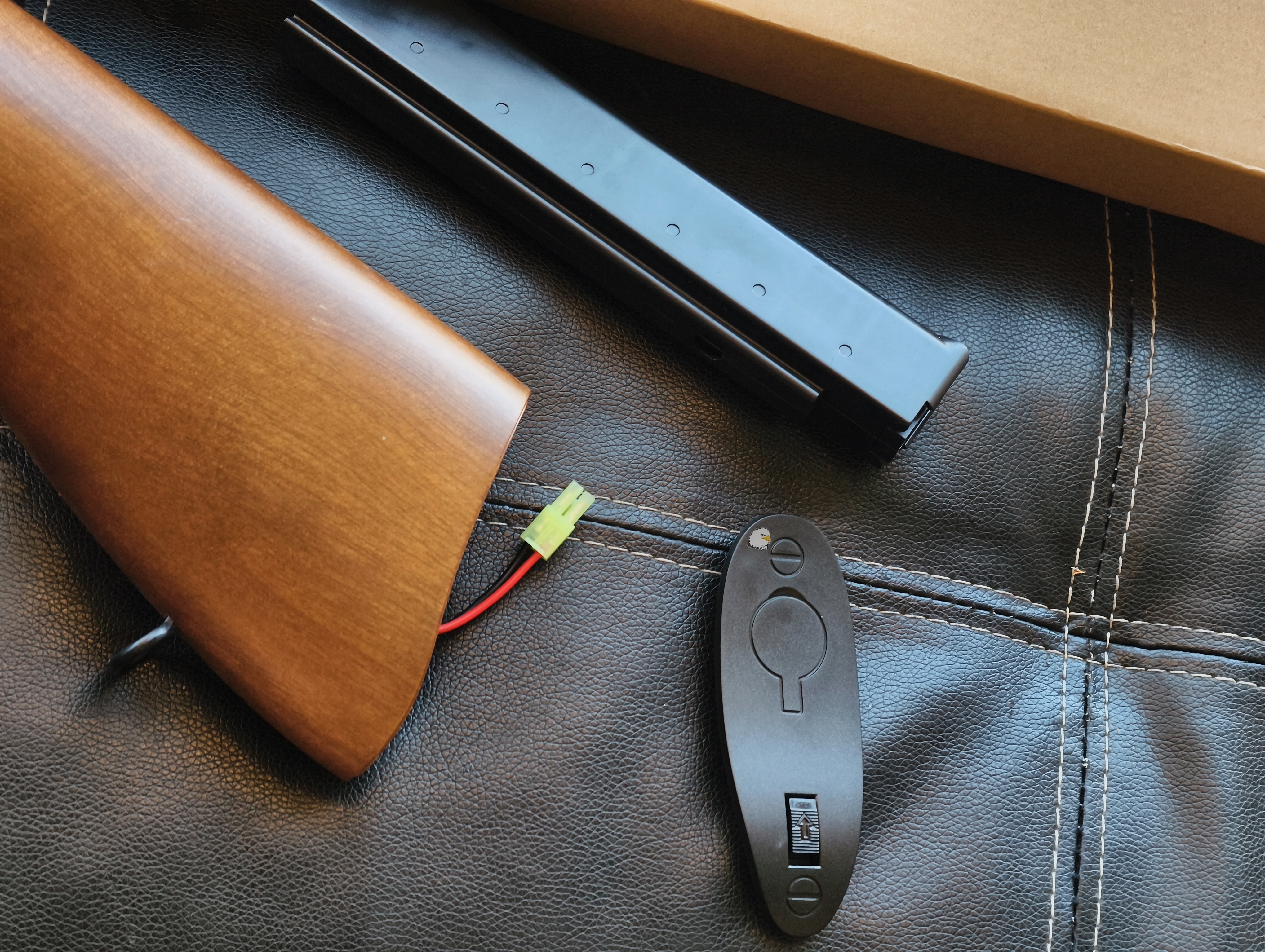 除了仿木材質的槍托外,其他部件大多由塑膠製成。