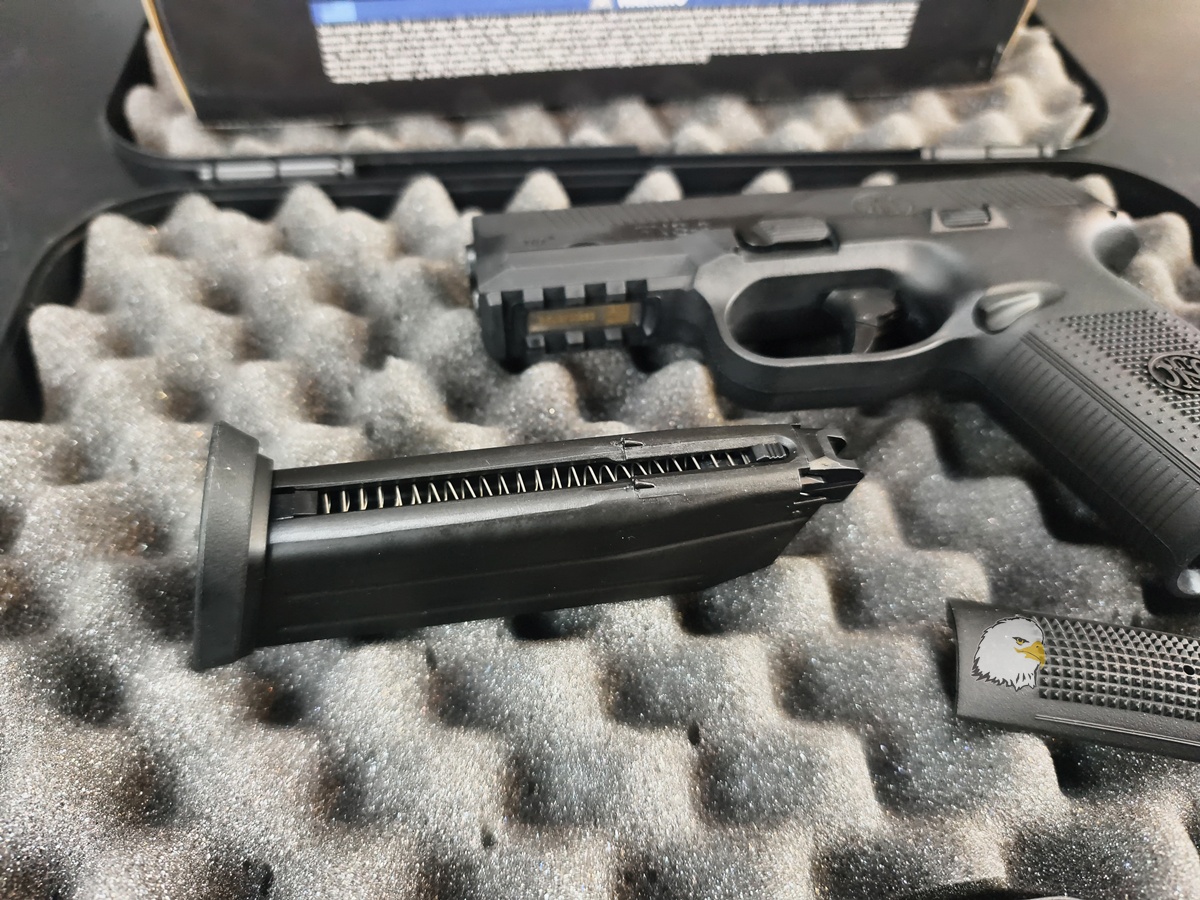 ○全槍有FN USA 實槍完整授權刻印外,彈匣也有仿真外觀設計。