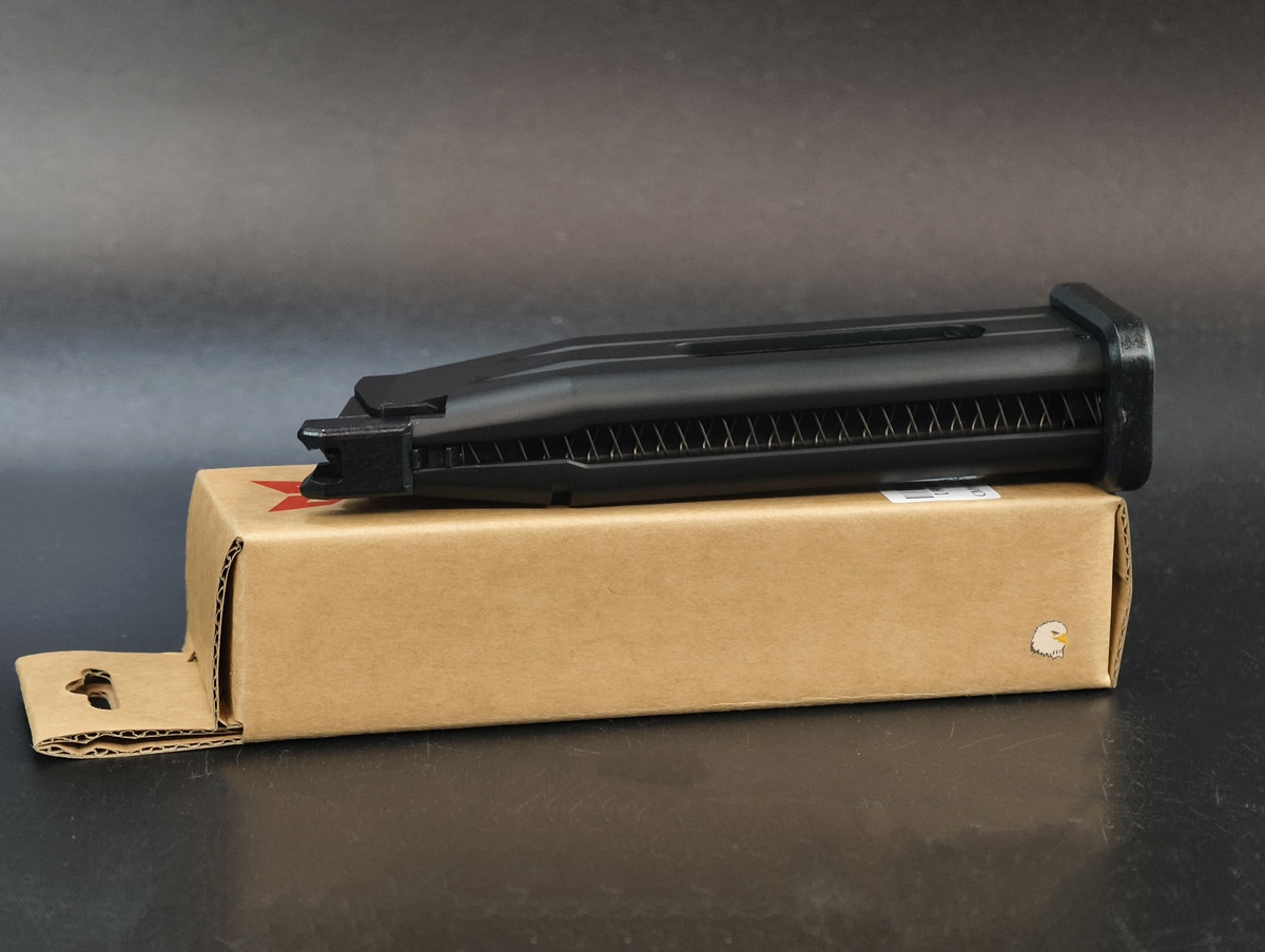 該彈匣為 26發容量、CO2動力、重量約345g,並相容多品牌 Hi-Capa GBB 手槍(如 Tokyo Marui、WE、AW、KJ 等)。