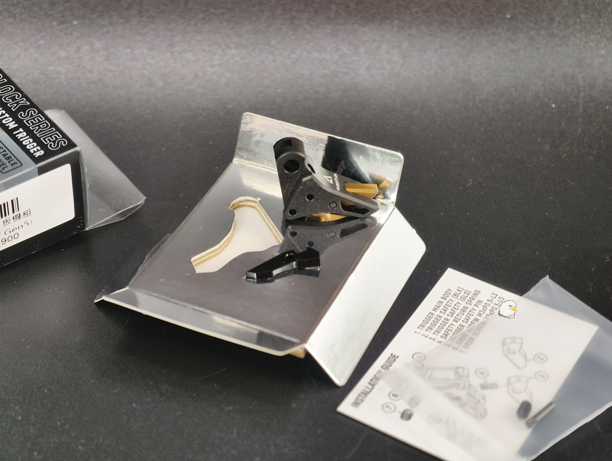 直面扳機由實心 6061 鋁坯 CNC 製作,並提供可調整預行程與更明確的釋放手感,提升扣壓回饋與射擊控制。