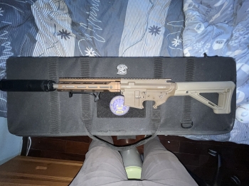 空槍缺:火控組,助進器,前後插銷,槍機,托桿,握把 附:dd復刻14牙滅音管,magpul固定式後拖,qd座背帶環,m-lok手阻,dd復刻防塵蓋 外觀有使用的痕跡