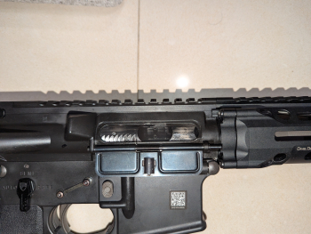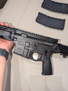 GHK DD M4 PDW 一槍兩匣 ,彈匣已經更換 JO-SHIN 加硬彈簧,後定更確實 雙邊拉柄 原廠管,楓葉 HOP 座 楓葉黃皮 RA 加大 雙邊 網球拍 Reptilia 真品握把 復刻 Magpul 護弓片、復刻 火控固定鎖、復刻 F1 火控射選 槍機固定塊已經換新,但有試射應該也有痕跡