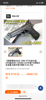 (二手)KWC PT92金牛座 CO2槍(KCB-15AHN) CO2手槍 可滑套式全金屬 瓦斯手槍 保險 D-03-290